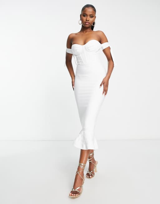 Rare London Off Shoulder Bandage Midi Dress In White Asos